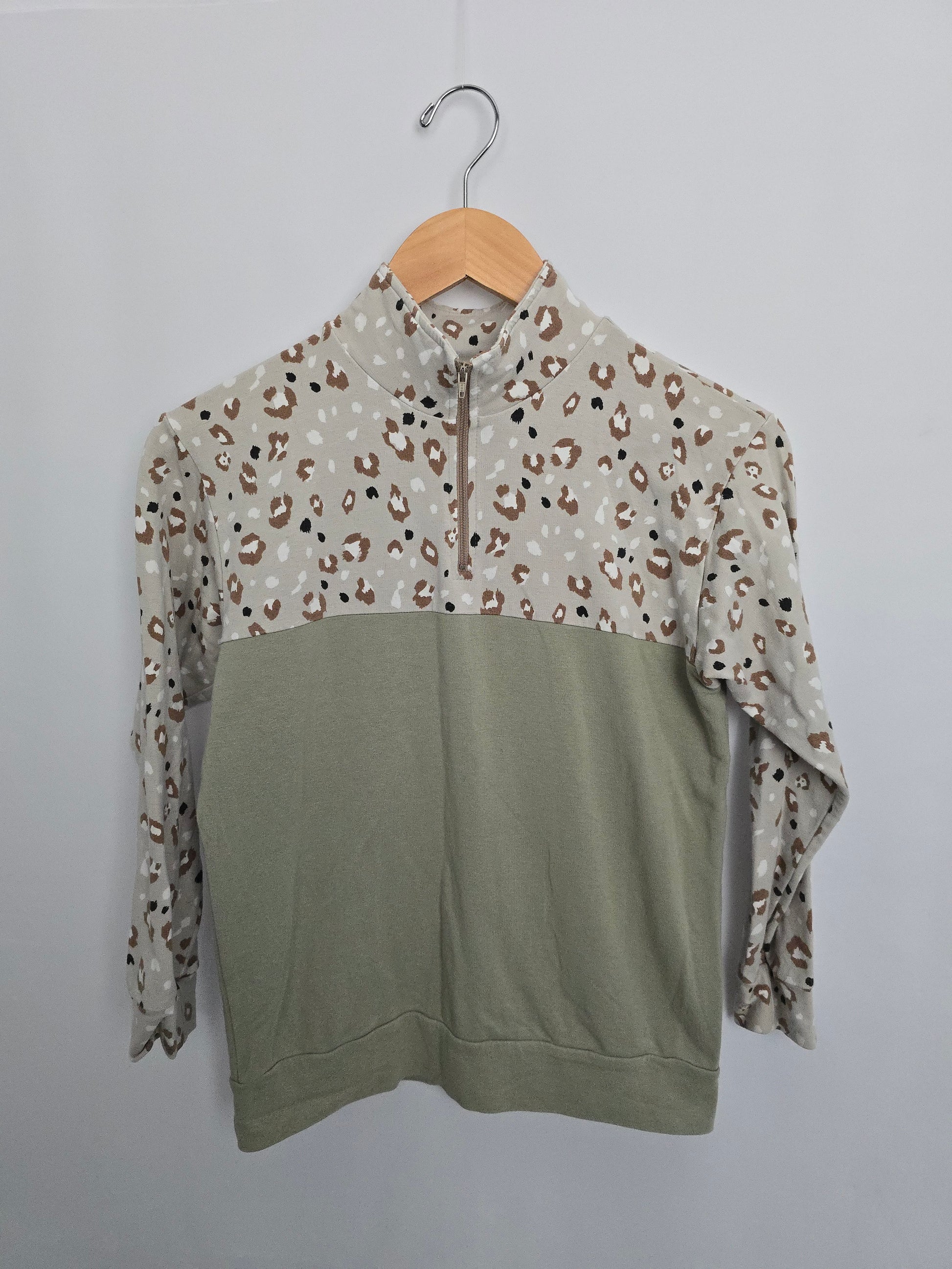 Jax & Lennon Snow Leopard/Mint Terry 1/2 Zip Crew • Youth Medium 8-9 years