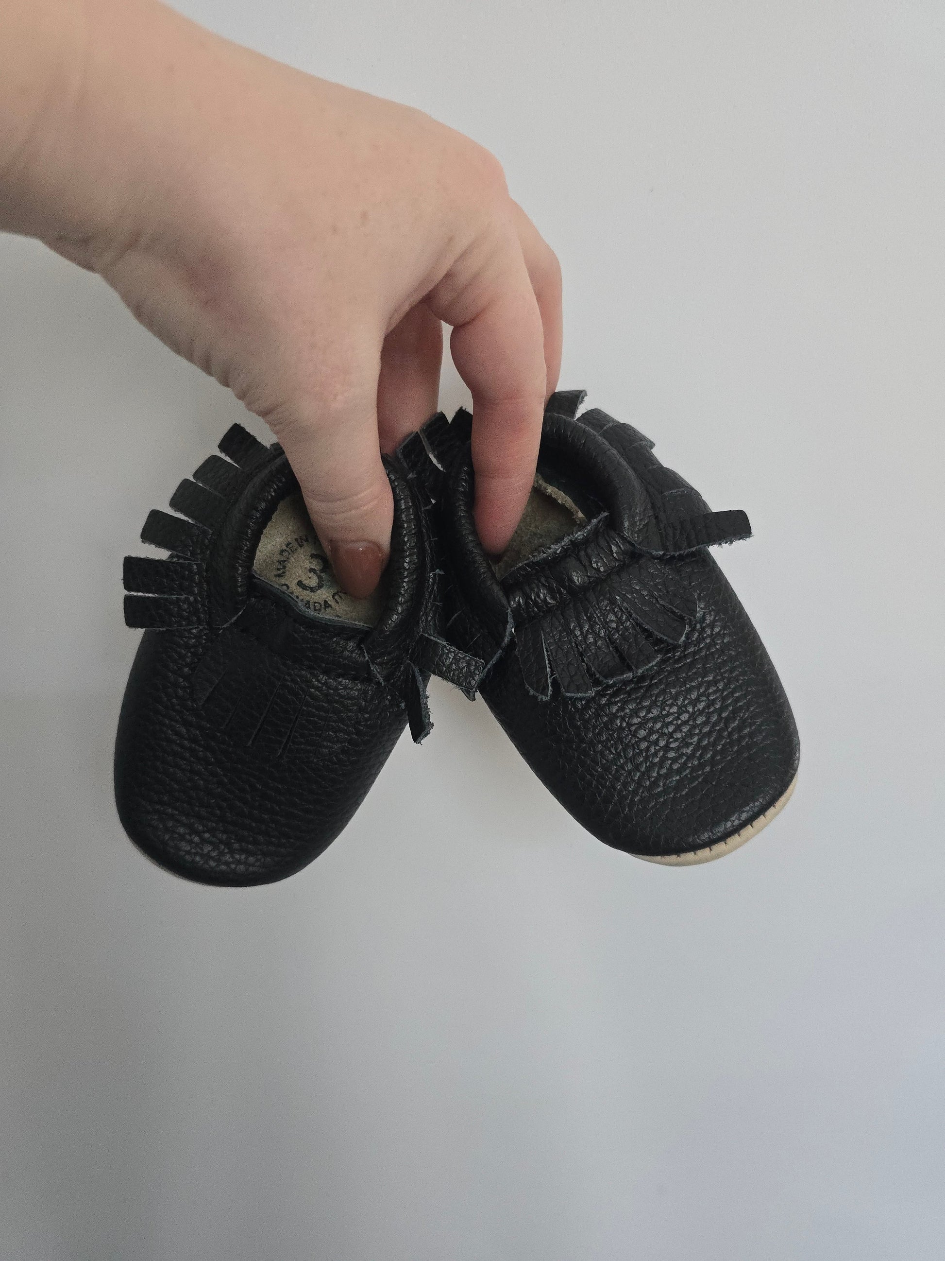 Minimoc Black Fringe Soft Sole Shoes • 3C