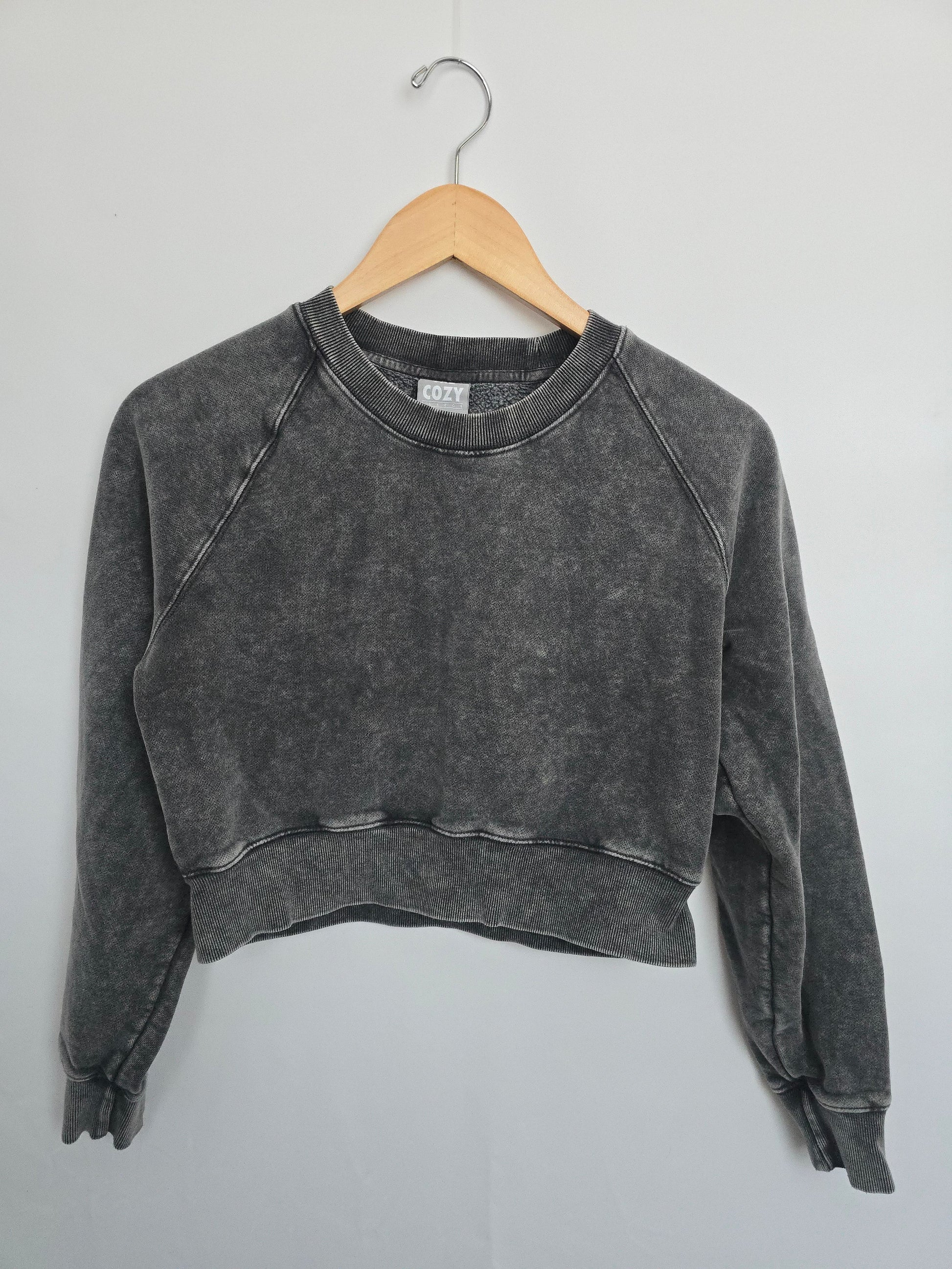 TNA Charcoal Cozy Fleece Cropped Crewneck • Small